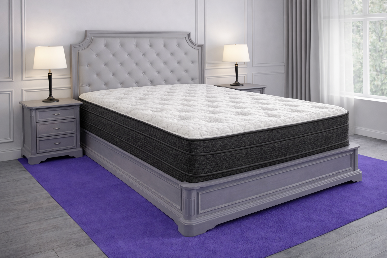 Visually, Royale has a richer and more classic luxury presence than the other Reserve models. The quilted white top, deeper euro-top edge, dark woven side panels, and clean layered piping give it a look that feels elegant, composed, and intentionally finished from every angle. That same visual depth carries into the sleep experience, creating a mattress that feels substantial, polished, and distinctly platinum night after night.