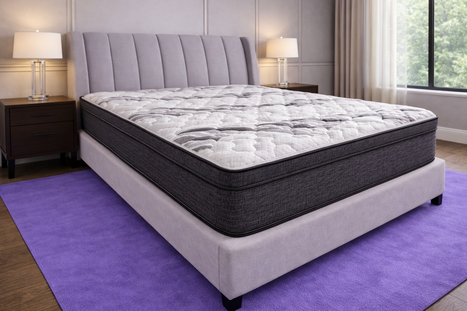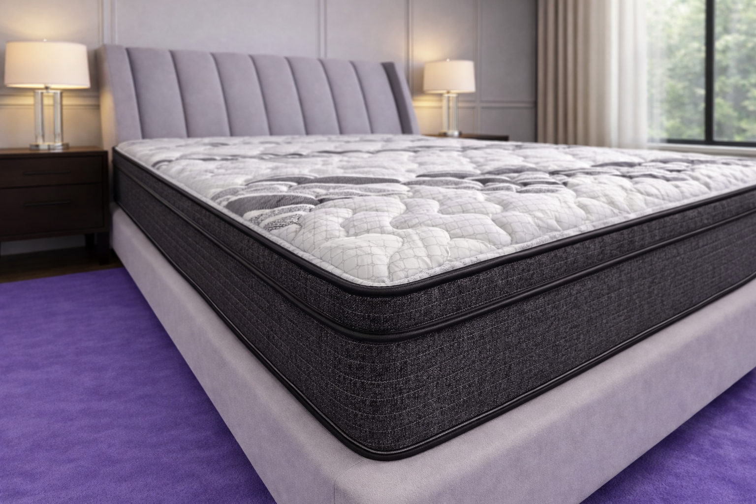 The Slumber Haven is designed for sleepers who want a mattress that feels taller, fuller, and more substantial from the moment they lie down. Built with a medium-soft feel, dependable innerspring support, and a 17-inch double-sided euro-top profile, it creates a sleep surface that feels deeply cushioned while still maintaining the steady structure needed for everyday comfort.