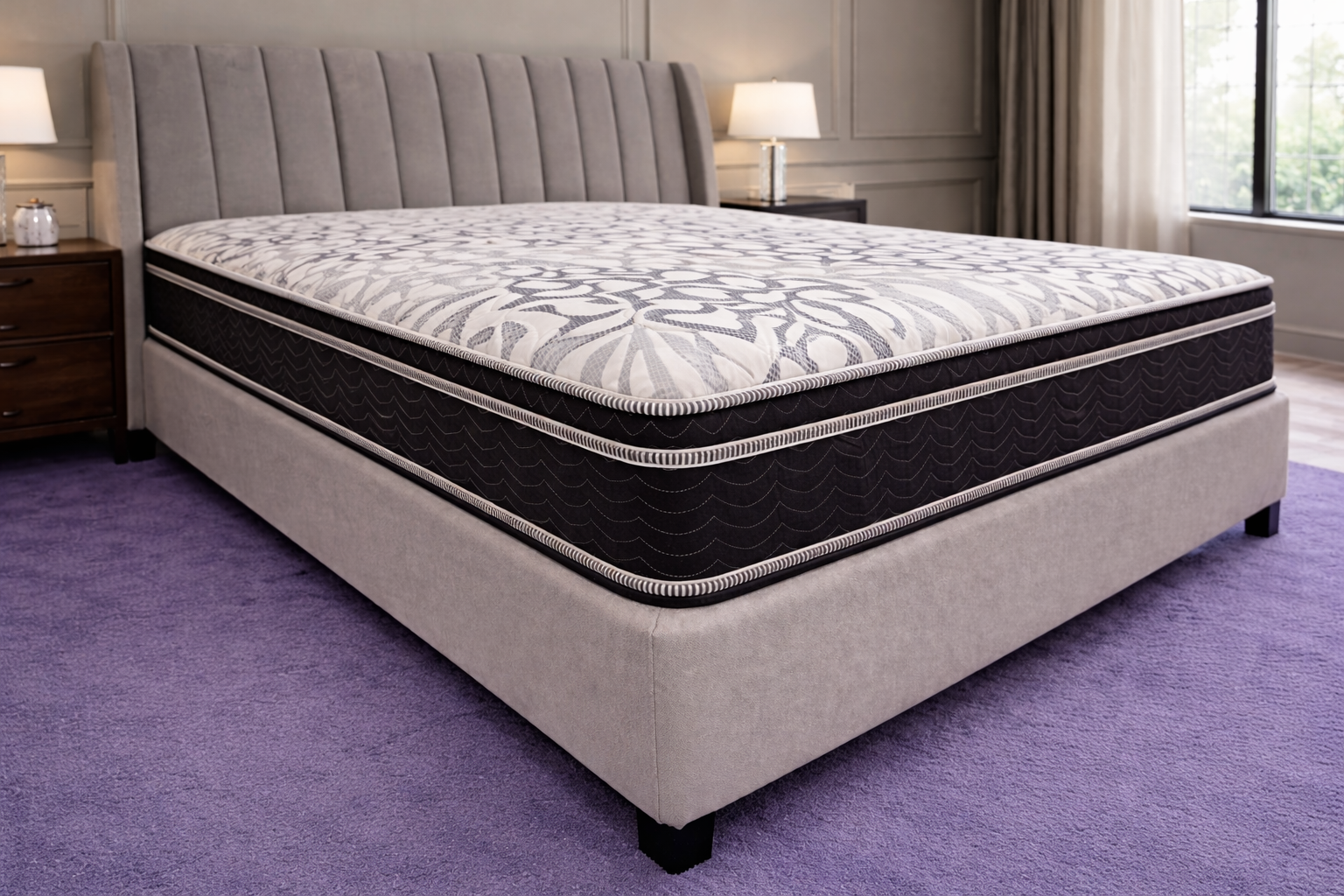 The Slumber Luster is designed for sleepers who want a mattress that feels elevated, balanced, and well-structured from the first night on. Built with a medium-firm feel, dependable innerspring support, and a 14-inch double-sided euro-top profile, it creates a sleep surface that feels steady and comfortably cushioned without leaning too soft.